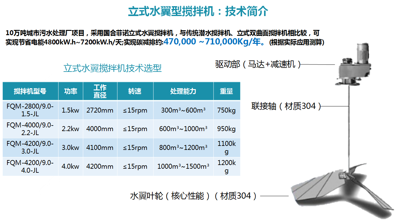 立式水翼搅拌机总装机功率比立式双曲面搅拌机功率要节电,外围辅助设施减少,选用立式水翼搅拌机能够满足工艺使用要求。